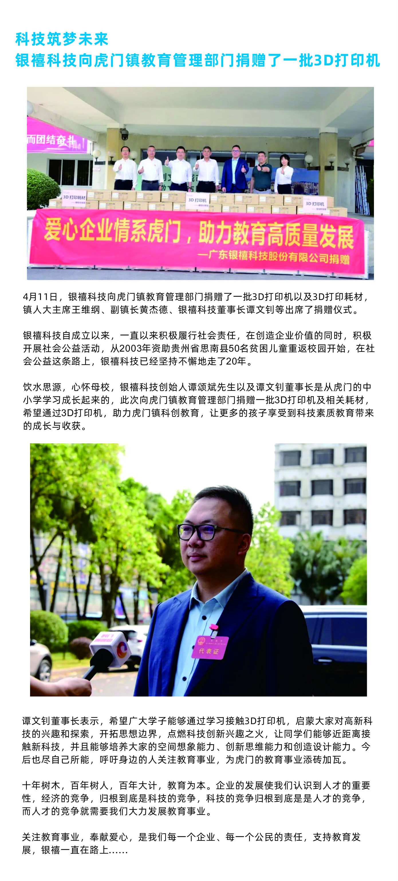 科技筑梦未来丨尊龙官方科技向虎门镇教育管理部分捐赠了一批3D打印机